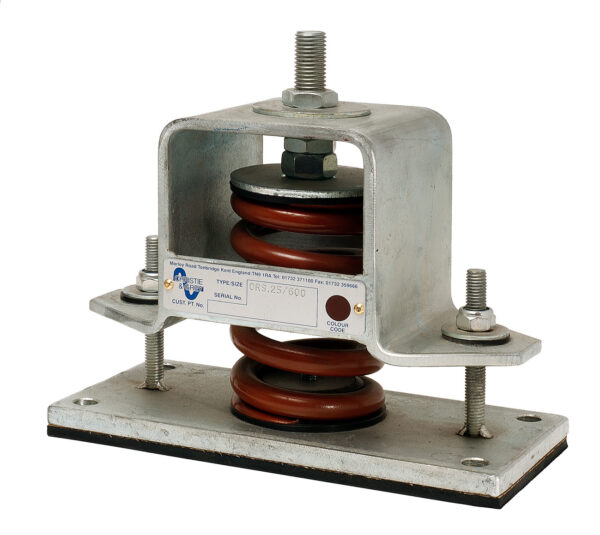 - Colour coded helical steel springs to BS1726 Class B with nominal deflections of 25 mm and 50 mm and up to 50% overload capacity.